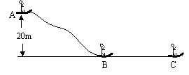 16、 如图所示,某人乘雪橇从雪坡经A点滑至B点,接着沿水平路面滑至C点停止,人与雪橇的总质量为70kg,表中记录了沿坡滑下过程中的有关数据,请根据图表中的数据解决下列问题: