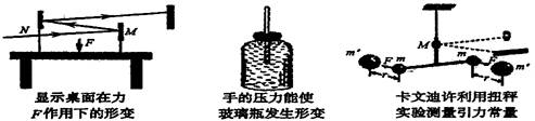 1、下列三个力学实验中体现出的共同的物理思想方法是 ( )