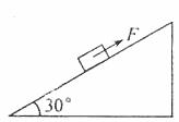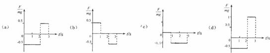 如图所示,在倾角为300的足够长的斜面上有一质量为m的物体,它受到沿斜面方向的力F的作用。力F可按图(a)、(b)(c)、(d)所示的四种方式随时间变化(图中纵坐标是F与mg的比值,力沿斜面向上为正)。已知此物体在t=0时速度为零,若用v1、v2 、v3 、v4分别表示上述四种受力情况下物体在3秒末的速率,则这四个速率中最大的是( )