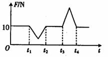 9、某实验小组的同学在电梯的天花板上固定一根弹簧秤,使其测量挂钩向下,并在钩上悬挂一个重为10N的钩码.弹簧秤弹力随时间变化的规律可通过一传感器直接得出,如图所示.则下列分析正确的是( )