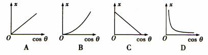 如图所示,一根轻弹簧上端固定在O点,下端拴一个钢球P,球处于静止状态.现对球施加一个方向向右的外力F,使球缓慢偏移,在移动中的每一个时刻,都可以认为钢球处于平衡状态.若外力F方向始终水平,移动中弹簧与竖直方向的夹角θ<90°且弹簧的伸长量不超过弹性限度,则下图给出的弹簧伸长量x与cosθ 的函数关系图象中,最接近的是