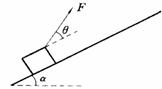 ( 10 分)如图所示,质量为m的物体恰好能在倾角为α的斜面上匀速下滑,如在物体上施加一个力F使物体沿斜面匀速上滑,为了使得力F取最小值,这个力与斜面的倾斜角θ为多大?这个力的最小值是多少? (设斜面长L)