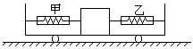 4、如图所示,底板光滑的小车上用两个量程为20牛顿、完全相同的弹簧秤甲和乙系住一个质量为1千克的物块,在水平地面上,当小车作匀速直线运动时,两弹簧秤的示数均为10牛顿.当小车作匀加速直线运动时,弹簧秤甲的示数变为8牛顿,这时小车运动的加速度大小是