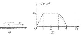 如图甲所示,在粗糙的水平面上,物块A在水平向右的外力F的作用下做直线运动,其v-t图像如图乙中实线所示,下列判断正确的是 ( )