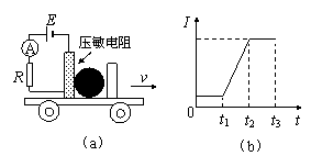 10、压敏电阻的阻值随所受压力的增大而减小,右位同学利用压敏电阻设计了判断小车运动状态的装置,其工作原理如图(a)所示,将压敏电阻和一块挡板固定在绝缘小车上,中间放置一个绝缘重球。小车向右做直线运动过程中,电流表示数如图(b)所示,下列判断正确的是