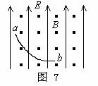 3.如图7所示,在空间存在水平方向的匀强磁场和竖直方向的匀强电场,电场强度为E,磁感应强度为B,在场区某点由静止释放一个带电液滴a,它运动到最低点处恰与一个原来处于静止的液滴b相碰,碰后两液滴合为一体,沿水平方向做直线运动,已知液滴a质量是液滴b质量的2倍,液滴a所带的电量是液滴b所带电量的4倍。求两液滴初始位置之间的高度差h(设a、b之间的静电力不计)