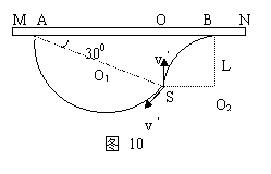 6.如图10所示,S为一个电子源,它可以在纸面的3600范围内发射速率相同的质量为m、电量为e的电子,MN是一块足够大的挡板,与S的距离OS=L,挡板在靠近电子源一侧有垂直纸面向里的匀强磁场,磁感强度为B,问: