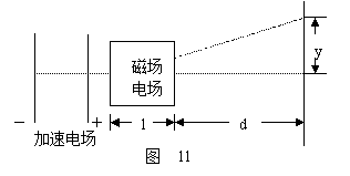 (2)如果撤去磁场,电场区域的长度为l,电场强度的方向和电子束初速方向垂直,电场区域边缘离屏之间的距离为d,要使电子束在屏上偏移距离为y,所需加速电压为多大?