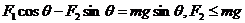 如图所示,在倾角为θ的固定光滑斜面上,质量为m的物体受外力F1和F2的作用,F1方向水平向右,F2方向竖直向上。若物体静止在斜面上,则下列关系正确的是