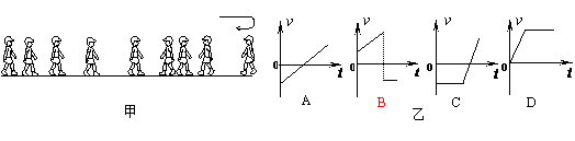 3、如图甲所示,某一同学沿一直线行走,现用频闪照相机记录 了他行走过程中连续9个位置的图片,仔细观察图片,指出在图乙中能接近真实反映该同学运动的v-t图象的是