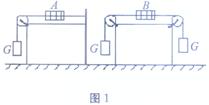 5.如图1所示,弹簧秤和细绳重力不计,不计一切摩擦,物体重G=5N,弹簧秤A和B的读数分别为