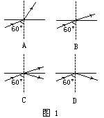 空气时入射角为60°,其正确的光路图如图1中哪一幅所示? [ ]