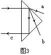 5.主截面为等边三角形的三棱镜,临界角为45°,光线从它的一面垂直入射,在图3所示的a,b,c三条出射光线中正确的是 [ ]
