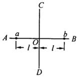 如图所示,在两个电荷量相等的固定点电荷的电场中,AB和CD是两条相互垂直、相交于O点的直线,两个点电荷在其中一条直线上且到另一条直线的距离相等。如果在直线AB上的a点无初速的释放一个重力可以不计的带正电粒子,那么粒子将在直线AB上的a、b之间做往复运动。已知a、b到O点的距离均为