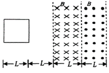 如图所示,一有界匀强磁场,磁感应强度大小均为B,方向分别垂直纸面向里和向外,磁场宽度均为L,在磁场区域的左侧相距为L处,有一边长为L的正方形导体线框,总电阻为R,且线框平面与磁场方向垂直。现使线框以速度v匀速穿过磁场区域。若以初始位置为计时起点,规定电流逆时针方向时的电流和电动势方向为正,B垂直纸面向里时为正,则以下关于线框中的感应电动势、磁通量、感应电流、和电功率的四个图象描述正确的是( )