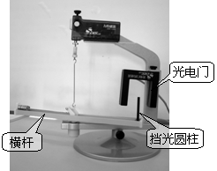 (青浦区)3、在下图所示的实验装置中,横杆能够绕竖直轴旋转,横杆在转动过程中,由于摩擦阻力的作用,横杆会越转越慢。在横杆的一端装有宽度为d=0.005m的竖直“挡光圆柱”,当“挡光圆柱”通过光电门时,光电门就记录挡光的时间间隔,“挡光圆柱”宽度与挡光时间之比,可以近似认为是“挡光圆柱”在该时刻的速度。横杆每转一圈,光电门就记录一次“挡光圆柱”挡光时间。