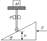 5.(徐汇区)(14分)如图所示为一种简易“千斤顶”,竖直放置的轻杆由于限制套管P的作用只能在竖直方向上运动。若支杆上放一质量为M=100kg的物体,支杆的下端通过一与杆连接的小轮放在倾角为θ=37°斜面体上,并将斜面体放在光滑的水平面上,斜面体质量为m=50kg。现沿水平方向对斜面体施以推力F,小轮摩擦和支杆质量均不计,试求: