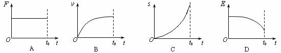 (静安区)3一物体沿固定斜面从静止开始向下运动,经过时间t0滑至斜面底端。已知在物体运动过程中物体所受的摩擦力恒定。若用F、v、s和E分别表示该物体所受的合力、物体的速度、位移和机械能,则下列图象中可能正确的是( )