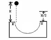 .图示M、N是固定的半圆形轨道的两个端点,轨道半径为R,一个质量为m的小球从M点正上方高为H处自由落下,正好沿切线进入轨道,M、N两点等高,小球离开N点后能上升的最大高度为H/2,不计空气阻力,则小球在此过程中克服半圆轨道摩擦力做的功为____________;小球到最高点后又落回半圆轨道,当它过最低点上升时,其最大高度的位置在M点的_______(填“上方”、“下方”或“等高处”).