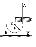 4.(崇明县)如图所示,B是质量为2m、半径为R的光滑半球形碗,放在光滑的水平桌面上。A是质量为m的细长直杆,光滑套管D被固定在竖直方向,A可以自由上下运动,物块C的质量为m,紧靠半球形碗放置。初始时,A杆被握住,使其下端正好与碗的半球面的上边缘接触(如图)。然后从静止开始释放A,A、B、C便开始运动。求: