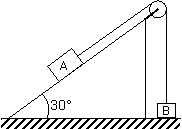 5.图所示,一固定的契形木块,其斜面的倾角θ=30°,另一边与地面垂直,顶上有一定滑轮,一柔软的细绳跨过定滑轮,两端分别与物块A和B连接。A的质量为4kg,B的质量为1kg。开始时将B按在地面上不动,然后放开手,让A沿斜面下滑而B上升。物块A与斜面间动摩擦因数为