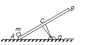 9.(卢湾区) 如图所示,一块质量为0.6kg均匀平板AB长0.8m,其左端搁在水平地面上,板与地面的夹角为370,板中心C垂直固定在支架上,支架长OC为0.3m,支架下端与水平固定转轴O连接.在平板A点处有一质量为0.5kg的小物体m以初速v0沿板向上运动,物体与平板间的动摩擦因数为0.2.试求: