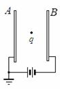 8、竖直放置的两块平行金属板A、B,分别跟电源的正负极连接,将电源正极接地,如图所示。在A、B中间固定一个带正电的电荷q,现保持A板不动,使B板向右平移一小段距离后,电荷q所在位置的电势U将
