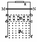 金属棒MN与框架接触良好。磁感应强度分别为B1、B2的有界匀