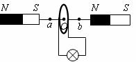 2.某同学在学习了法拉第电磁感应定律之后,自己制作了一个手动手电筒,如图是手电筒的简单结构示意图,左右两端是两块完全相同的条形磁铁,中间是一根绝缘直杆,由绝缘细铜丝绕制的多匝环形线圈只可在直杆上自由滑动,线圈两端接一灯泡,晃动手电筒时线圈也来回滑动,灯泡就会发光,其中O点是两磁极连线的中点,a、b两点关于O点对称,则下列说法中正确的是( )