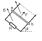 3、如图所示,两根光滑的金属导轨,平行放置在倾角为θ斜角上,导轨的左端接有电阻R,导轨自身的电阻可忽略不计。斜面处在一匀强磁场中,磁场方向垂直于斜面向上。质量为m,电阻可不计的金属棒ab,在沿着斜面与棒垂直的恒力作用下沿导轨匀速上滑,并上升h高度,如图所示。在这过程中