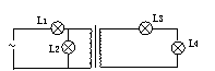 如图所示理想变压器原副线圈匝数比为1:2,两端分别接有四个阻值相同的灯泡,已知4盏灯均能发光,则L1和L2的功率之比为( )