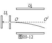15.如图㈢-12所示,一个质量为m、电荷量为q的带电粒子从静止被电压U1加速后沿平行板电容器两极板的中线OO/ 射入电容器,并从右侧射出。电容器板长和极板间距离相等,两板间电压为U2,则该带电粒子在穿过电容器过程中的动能增量为_________。