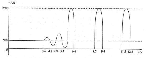 20.(10分)一位蹦床运动员仅在竖直方向上运动,弹簧床对运动员的弹力F的大小随时间t的变化规律通过传感器用计算机绘制出来,如图所示.重力加速度g取10m/s2,试结合图象,求运动员在运动过程中的最大加速度.
