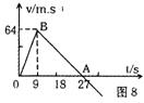 、(16分)一行星探测器从所探测的行星表面垂直升空,若该行星表面没有空气,探测器的质量恒为1.5×103kg,发动机的推力是恒定的,在探测器升空中的途中突然关闭,在此过程中得到图8中的图线,试分析并求得: