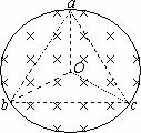 11、(19分)如图1-8所示,在半径为r的圆形区域内有磁感应强度为B,方向垂直纸面向里的匀强磁场,磁场区域的边界上有a、 b、c三点,三点与圆心O的连线互成1200角度.某时刻静止在b点处的原子核X发生α衰变,α粒子沿bc连线方向射入磁场,经磁场偏转后恰好由a点射出且与ac连线相切.已知α粒子的质量为m,电量为2e,剩余核质量为M,衰变过程释放的核能全部转化为动能,求原子核X的质量.