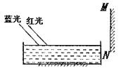 2.如图所示,水盆中盛有一定深度的水,盆底处水平放置一个平面镜。平行的红光束和蓝光斜射入水中,经平面镜反射后,从水面射出并分别投射到屏MN上两点,则有 ( )