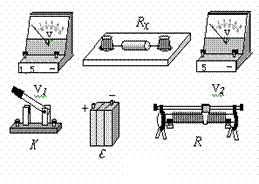 ① 测量中要求电压表的读数不小于其量程的1/3,试画出测量电阻Rx的一种实验电路原理图(原理图中的元件要用题图中相应的英文字母标注)。