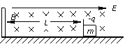 12. (20分) 光滑水平面上存在匀强电场E和匀强磁场B,电场线水平向右,磁感线水平指向纸里。水平面左端固定着一块竖直挡板,离挡板相距L处放着一个质量为m、带电荷量为-q的小物块m,如图所示。物块在电场力作用下从静止开始运动,而后相继多次与挡板向碰,物块每次和挡板碰撞后速度都减为碰前的k倍(k<1),设物块在运动和碰撞过程中电荷量始
