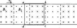 2003年诺贝尔物理奖授予俄罗斯的阿布里科索夫、金兹布尔格和英国人(后加入美国国籍)利盖特三位科学家,以表彰他们在超导电体和超流体方面做出了开创性的贡献。磁悬浮列车的运行原理可简化为如图所示的模型,在水平面上,两根平行直导轨间有竖直方向且等距离分布的匀强磁场B1和B2,导轨上有金属框abcd,金属框宽度ab与磁场B1、B2宽度相同。当匀强磁场B1和B2同时以速度v0沿直导轨向右做匀速运动时,金属框也会沿直导轨运动,设直导轨间距为L,B1=B2=B,金属框的电阻为R,金属框运动时受到的阻力恒为F,则金属框运动的最大速度为多少?