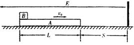 12.质量mA=3.0kg、长度L=0.60m、电量q=+4.0×10-5C的导体板A在绝缘水平面上,质量mB=1.0kg可视为质点的绝缘物块B在导体板A上的左端,开始时A、B保持相对静止一起向右滑动,当它们的速度减小到v0=3.0m/s时,立即施加一个方向水平向左、场强大小E=1.0×105N/C的匀强电场,此时A的右端到竖直绝缘挡板的距离为S,此后A、B始终处在匀强电场中,如图所示。假定A与挡板碰撞时间极短且无机械能损失,A与B之间(动摩擦因数μ1=0.25)及A与地面之间(动摩擦因数μ2=0.10)的最大静摩擦力可认为等于其滑动摩擦力,g取10m/s2。试求要使B不从A上滑下,S应满足的条件。