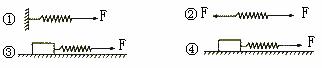 4.如图21所示,四个完全相同的弹簧都处于水平位置,它们的右端受到大小皆为F的拉力作用,而左端的情况各不相同:①中弹簧的左端固定在墙上,②中弹簧的左端受到大小也为F的拉力作用,③中弹簧的左端拴一小物块,物块在光滑的桌面上滑动,④中弹簧的左端拴一小物块,物块在有摩擦的桌面上滑动。若认为弹簧的质量都为零,以L1、L2、L3、L