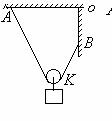 12.如图29左所示,将一条轻而柔软的细绳一端固定在天花板上的A点,另一端固定在竖直墙上的B点,A、B两点到O点的距离相等,绳的长度为OA的两倍。为一质量和半径中忽略的动滑轮K,滑轮下悬挂一质量为m的重物,设摩擦力可忽略。现将动滑轮和重物一起挂到细绳上,在达到平衡时,绳所受的拉力是多大? 图29
