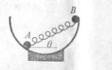 如图所示,轻质刚性弹簧两端拴接着可看作质点的小球A和B.当两球静置于内壁光滑为R的半径为显的半球形容器内时,两球之间的距离为