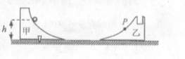1I.如图所示,在光滑的水平面上有甲、乙两个带有光滑轨道的滑块,且轨道在同一竖直平面内,将甲滑块固定,让乙滑块自由静止.己知乙滑块的质量为m,今将一质量同为m的小球从甲轨道上距离水平面高为h处自由释放,小球恰能滚到乙滑块轨道上的P点.在乙滑块的凹内嵌入一只质量为m砝码后,并将其放回原处,重新让小球从甲轨道上距离水平面高为h’处自由释放,结果小球仍恰好滚到乙滑块轨道上的P点.则h与h’的比值为