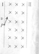 的负离子,以速度v垂直磁感应强度为B的匀强磁场由.P点进入,界面I和Ⅱ平行,宽度为L(L<