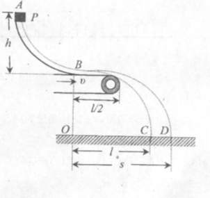 (12分)如图所示,aB是一段位于竖直平面内的光滑轨道,高度为h,末端B处的切线方向水平:一个质量为m的小物块P从轨道顶端A处由静止释放,滑到B端后飞出,落到地面上的C点,轨迹如图中虚线BC所示.已知它落地时相对于B点的水平位移OC=l.现在轨道下方紧贴B点安装一水平传送带,传送带的右端与B的距离为,l/2.当