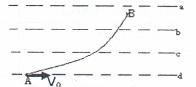 一个带电粒子沿下图中AB曲线穿过一匀强电场中的等势面,若不计粒子所受重力,则有