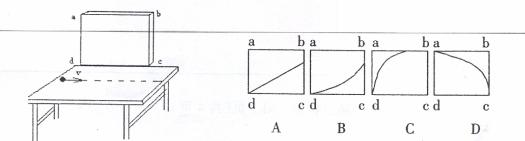 如图所示,光滑水平桌面上,一小球以速度v向右匀速运动,当它经过靠近桌边的竖直木板ad边前方时,木版开始自由落体运动。若木版开始运动,cd边与桌面相齐,则小球在木版上的投影轨迹是