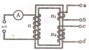 如图所示的理想变压器,两个副线圈匝数分别为n1和n2,当把电热器接在ab,使cd空载时,电流表的示数为I1;当把同一电热器接在cd,而使ab空载时,电流表的示数为l2,则I1:l2等于( )