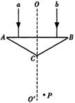 15、如图所示,A、B、C为等腰棱镜,a、b两束不同频率的单色光垂直AB边射入棱镜,两束光在AB面上入射点到D的距离相等,两束光折射后相交于图中的P点,以下判断正确的是: